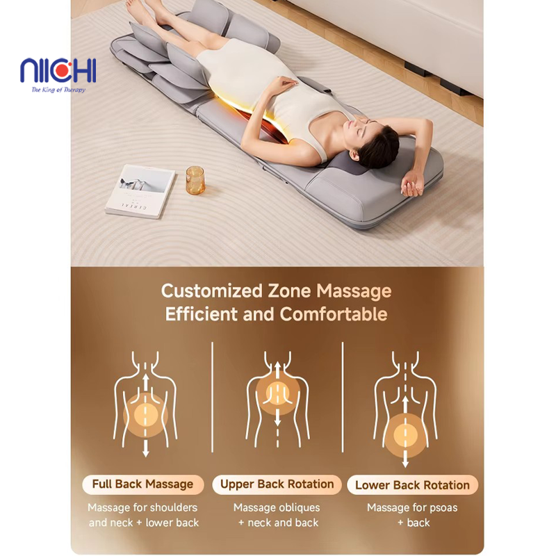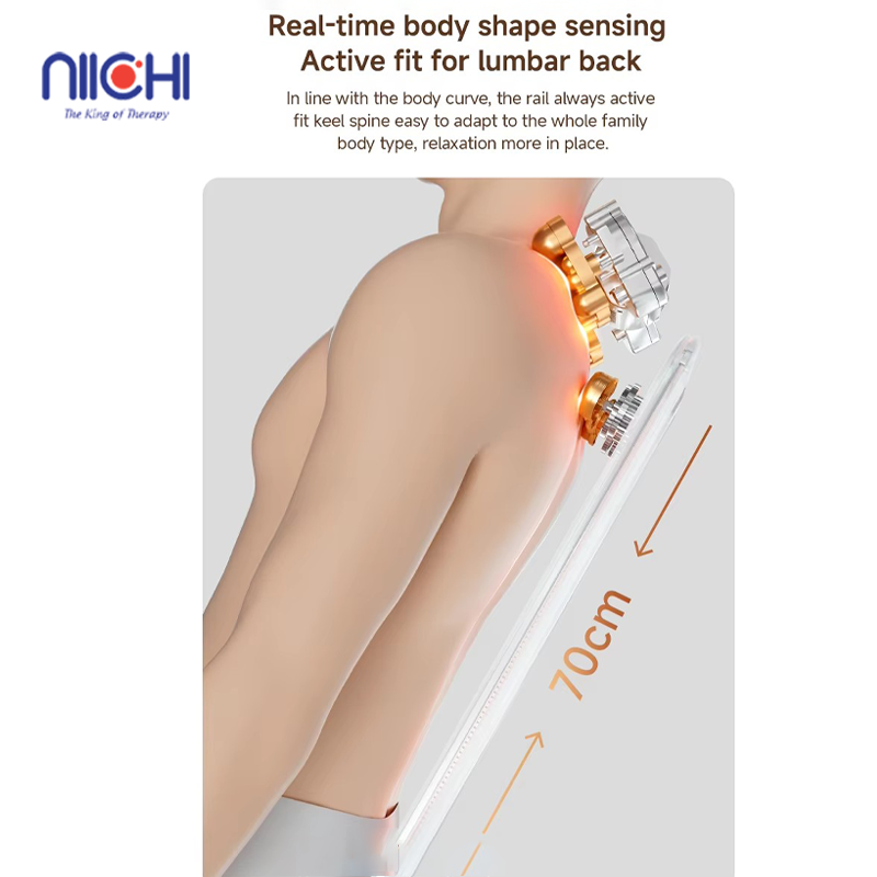 2. Equipped with a 70cm long massage rail, the mat perfectly adapts to the natural curves of the body. This ensures precise massage coverage from the upper back, lower back, down to the waist, suitable for different body shapes and offering a comfortable experience for the whole family.